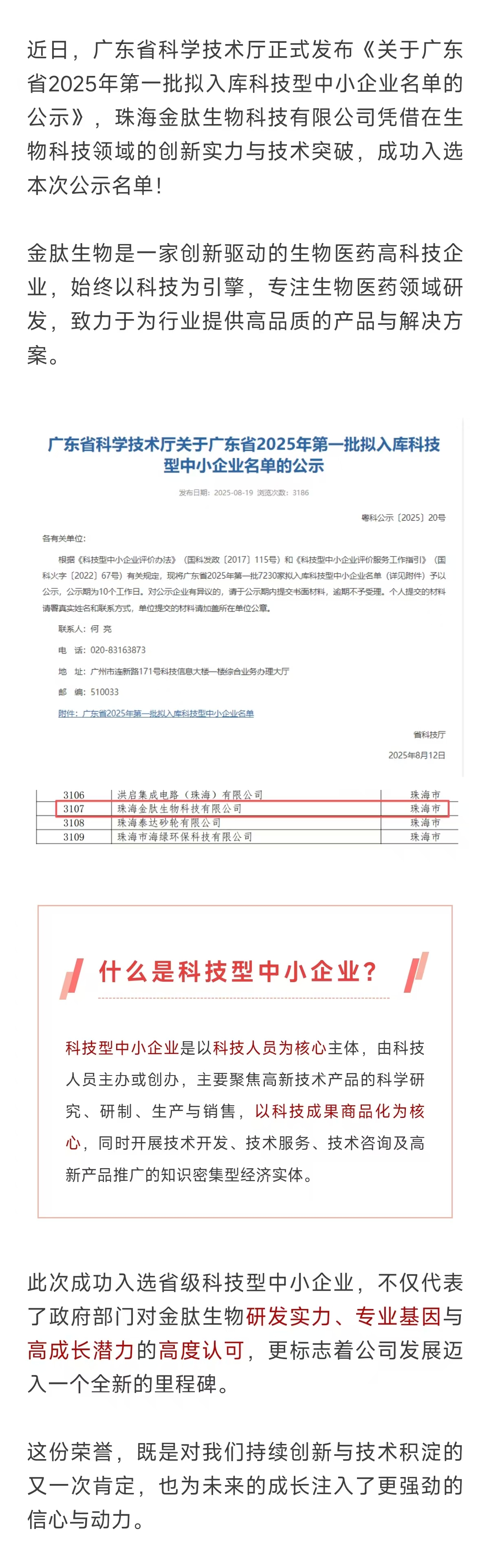 丽典快讯 | 金肽生物入选2025年广东省科技型中小企业名单